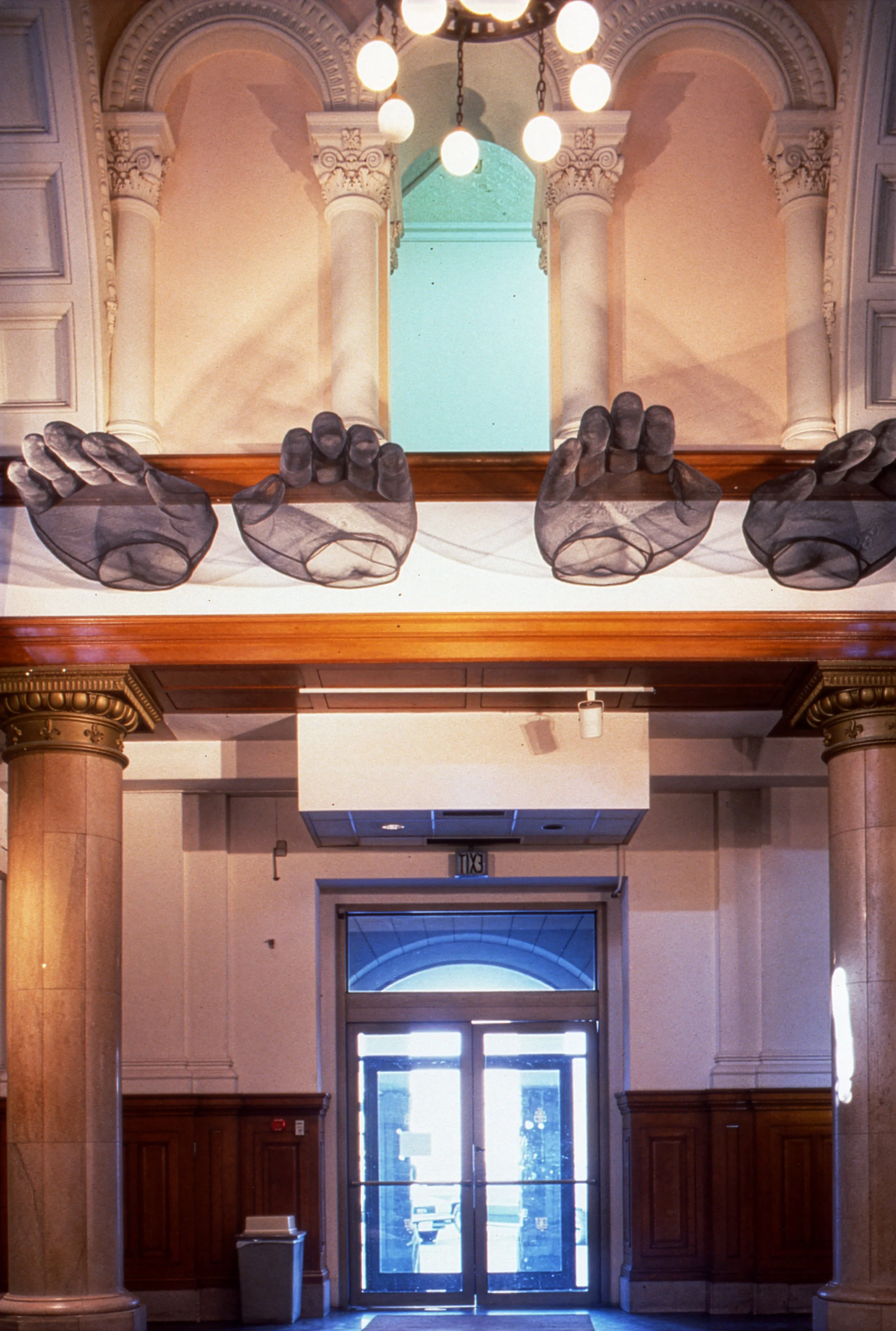 Form & Capacity, Baltimore, detail, 1991, aluminum wire mesh, steel, wheat, 24'x26'x23'