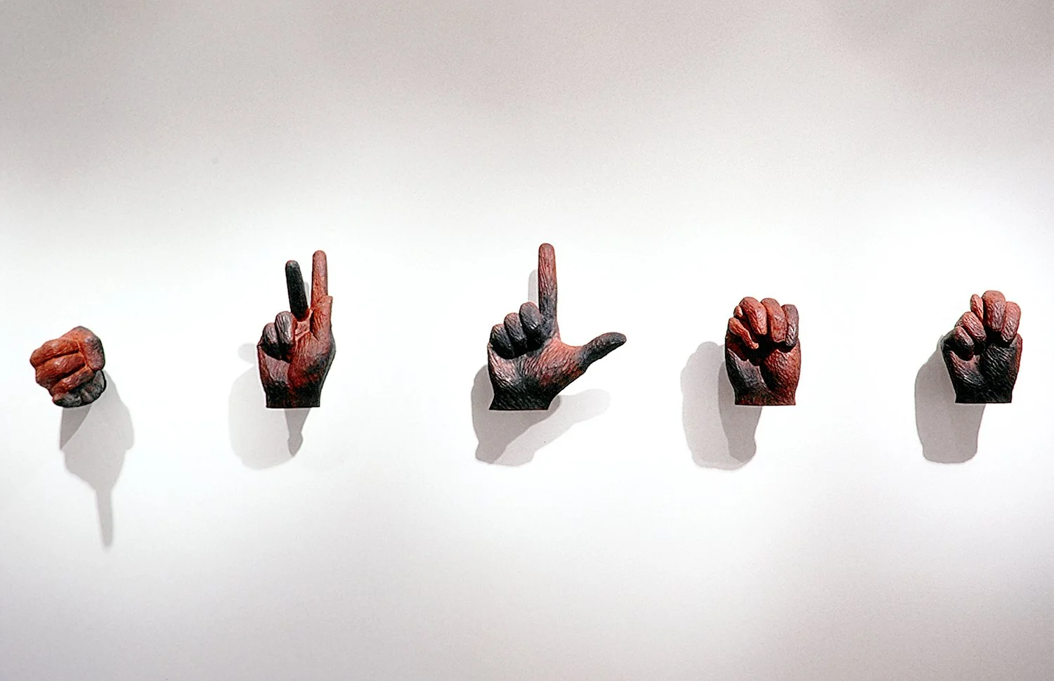 Muted Exhortations, J,K,L,M,N, 1990, wood, red phosphorus, acrylic, steel, variable size