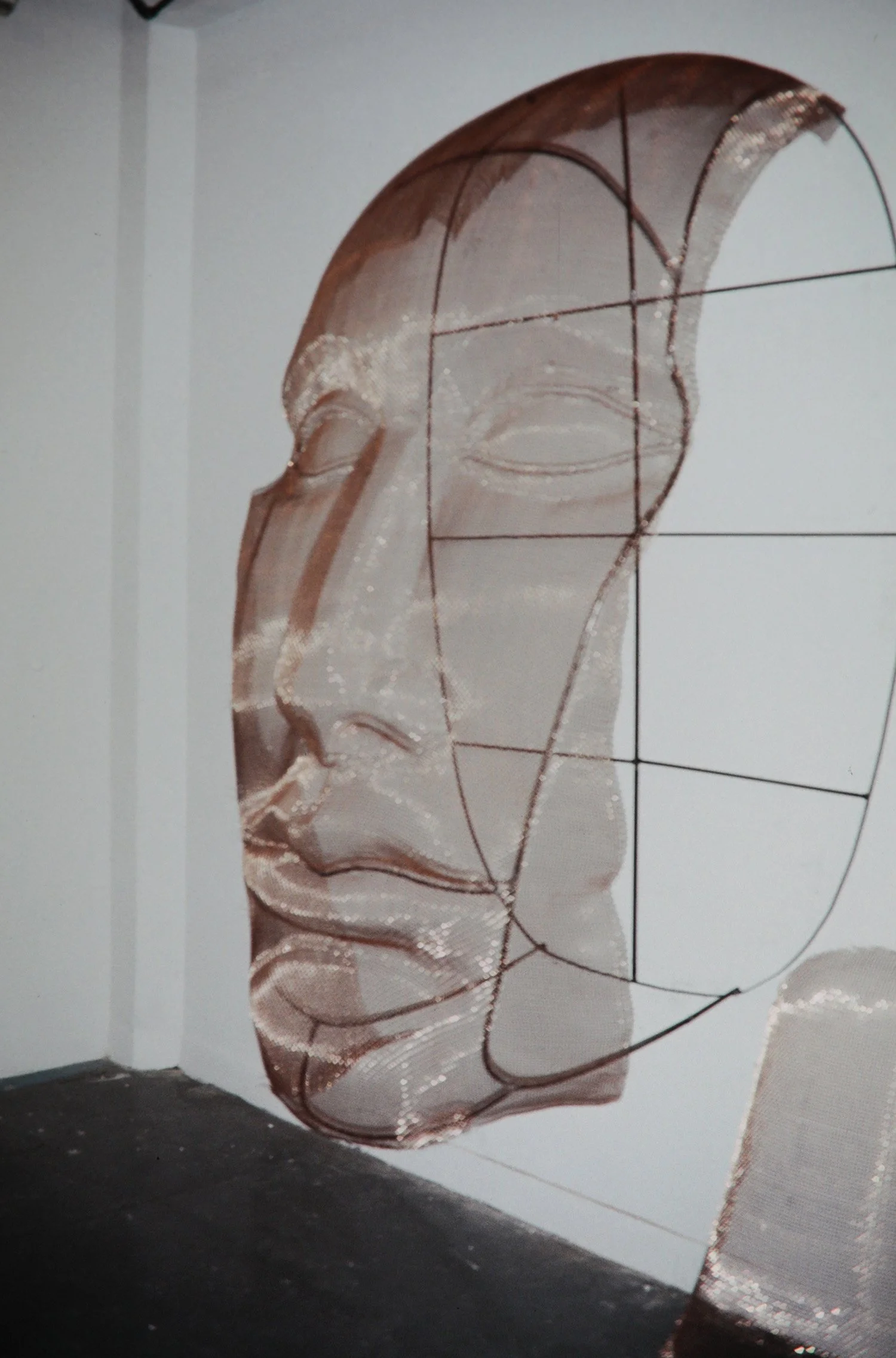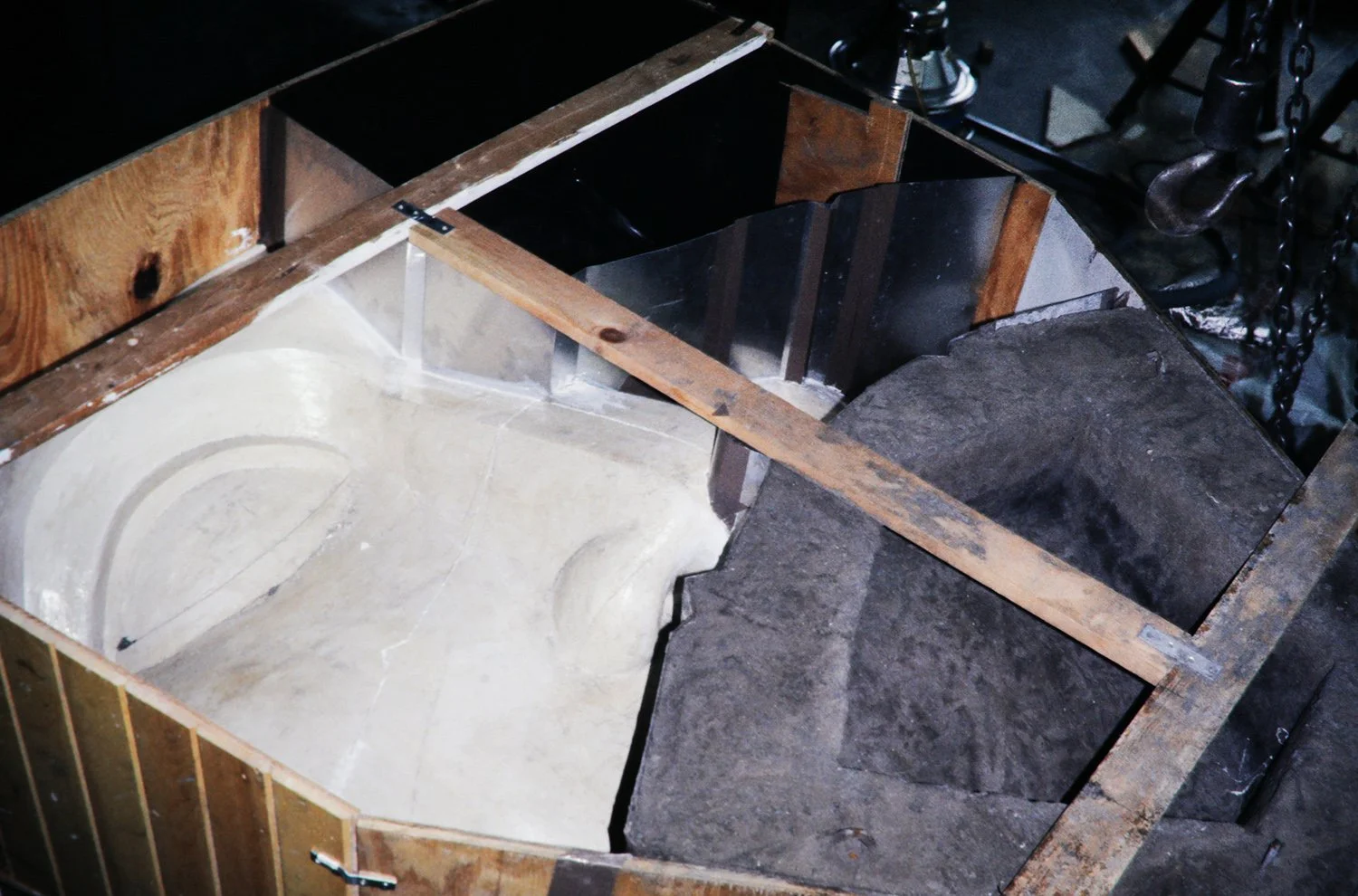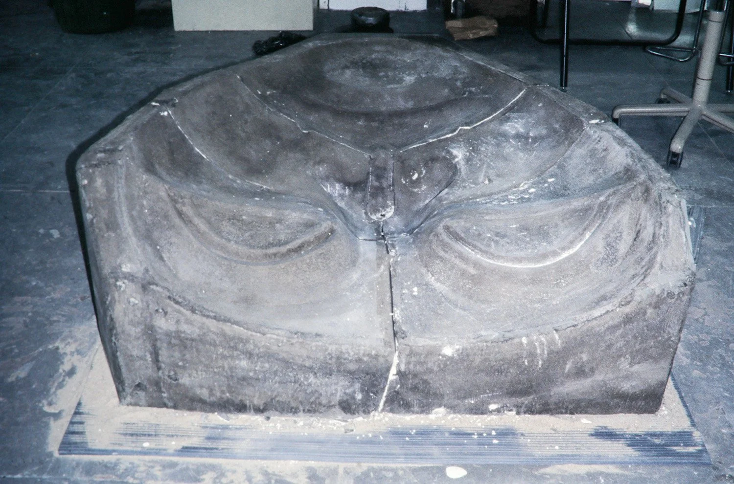 completed cement mold - copper wire mesh was heated and beaten into the mold to create the features